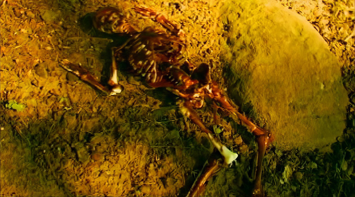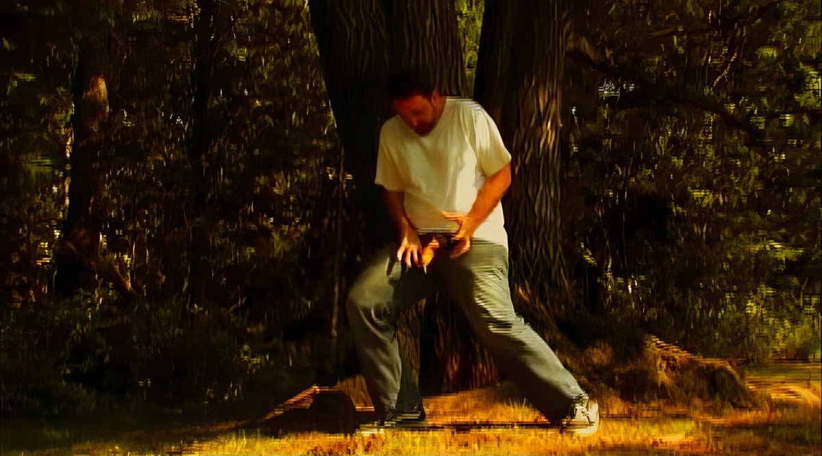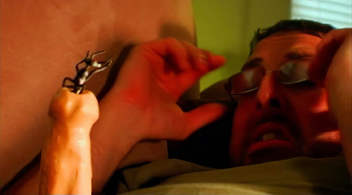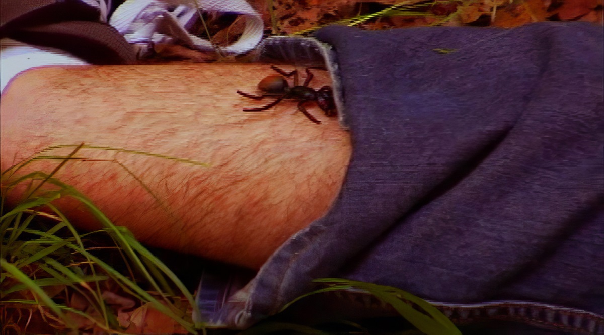 bullied man is beaten and left lying in the woods. A large ant crawls up his
