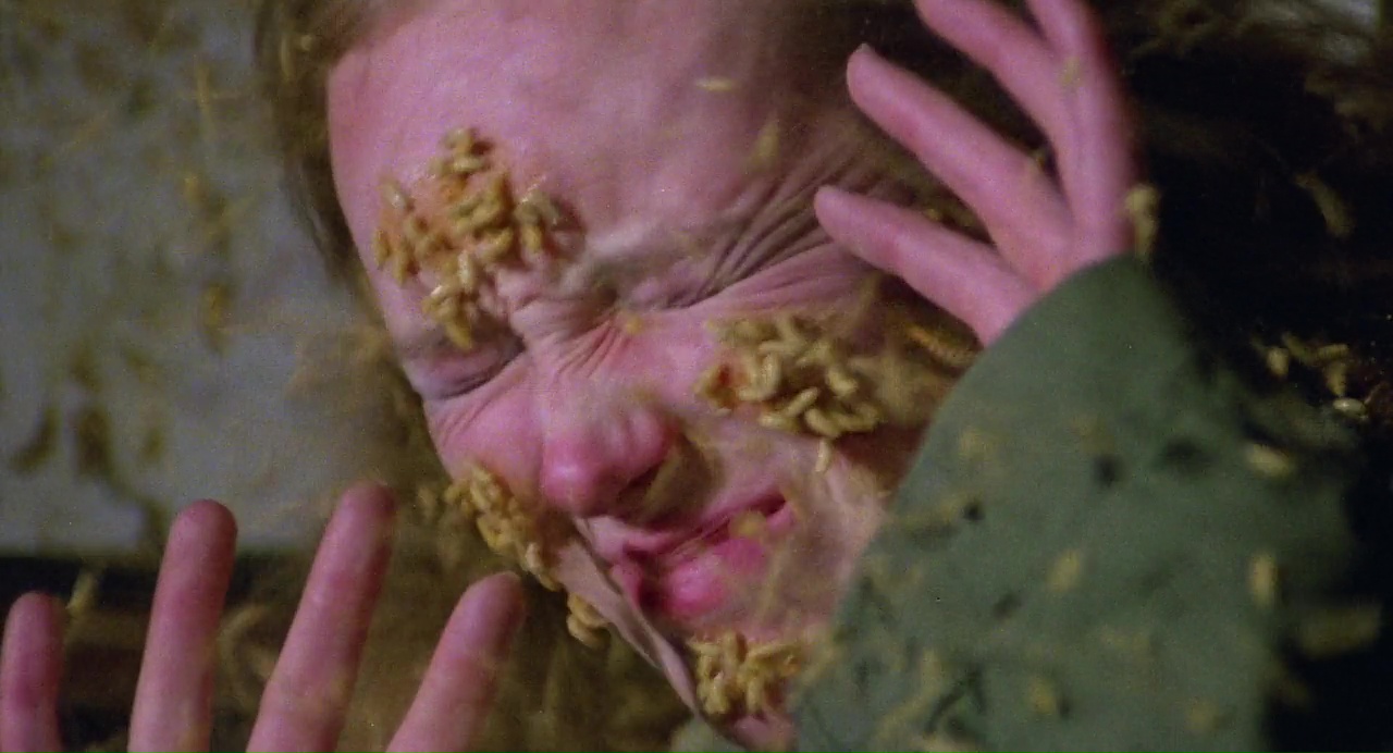 brains being squished from heads, a maggot attack, bleeding eyes, and a couple