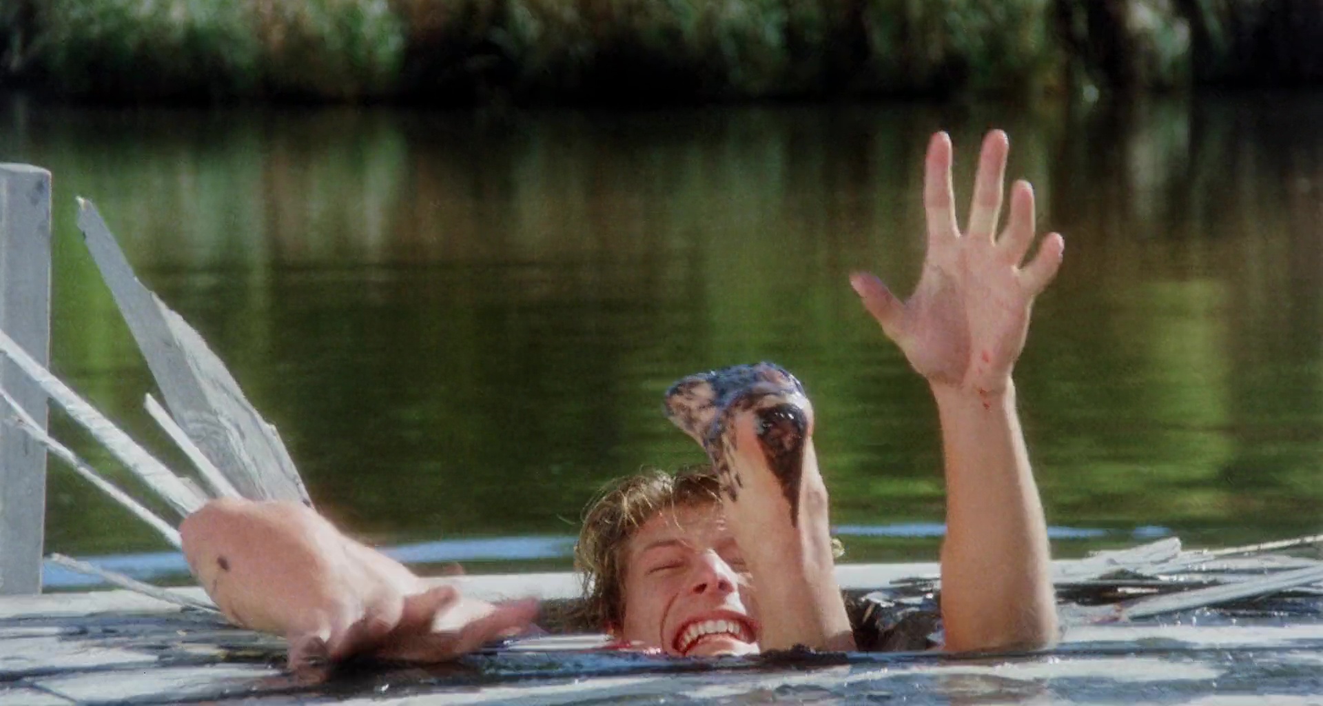 middle of the lake but become trapped on there by a strange, large floating