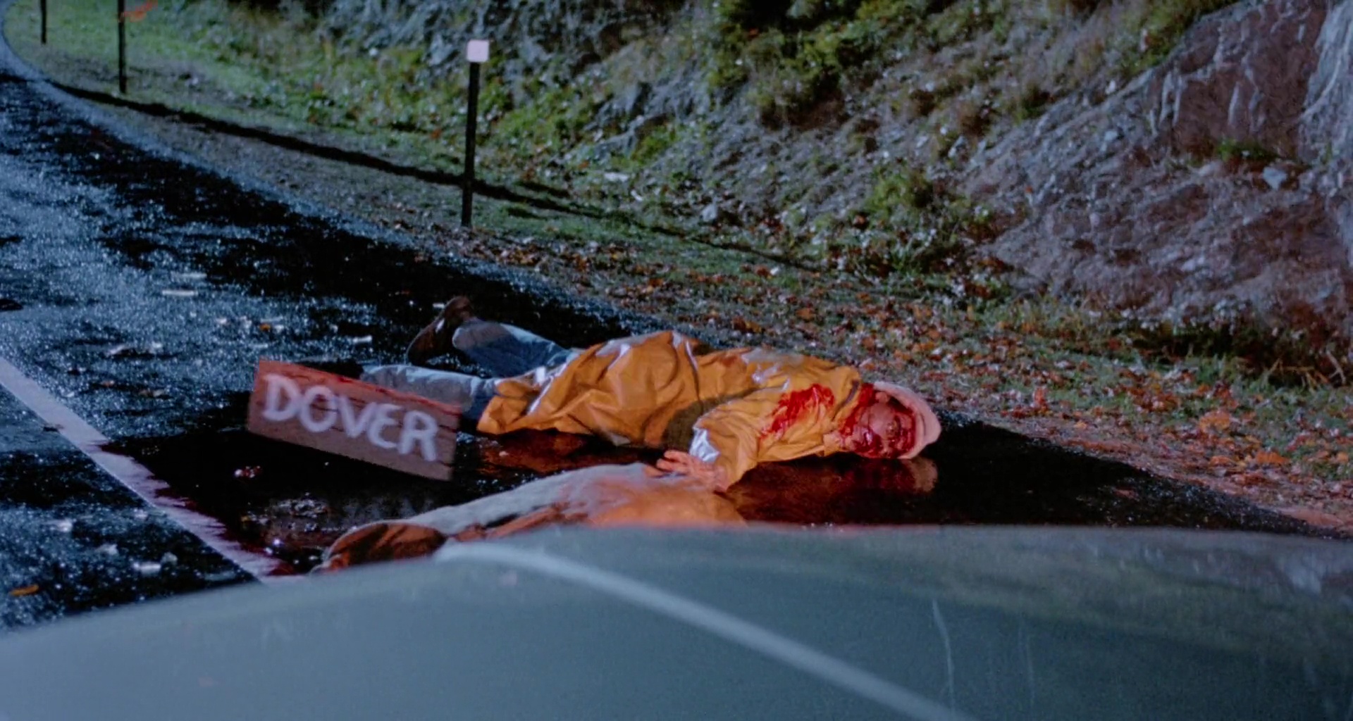 hitchhiker's Dover sign hanging from her. The gore effects here are really good