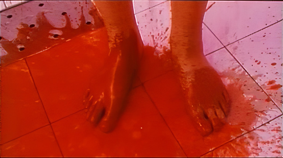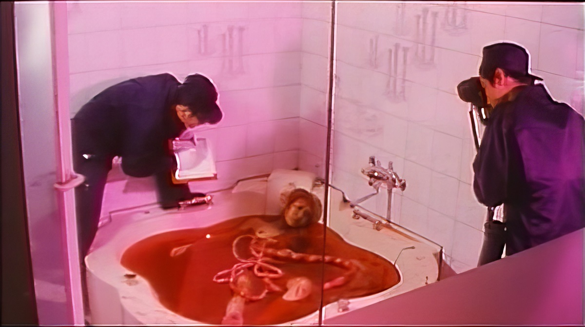 before collapsing in a pool of blood. Oh, she also gets semen sprayed into the