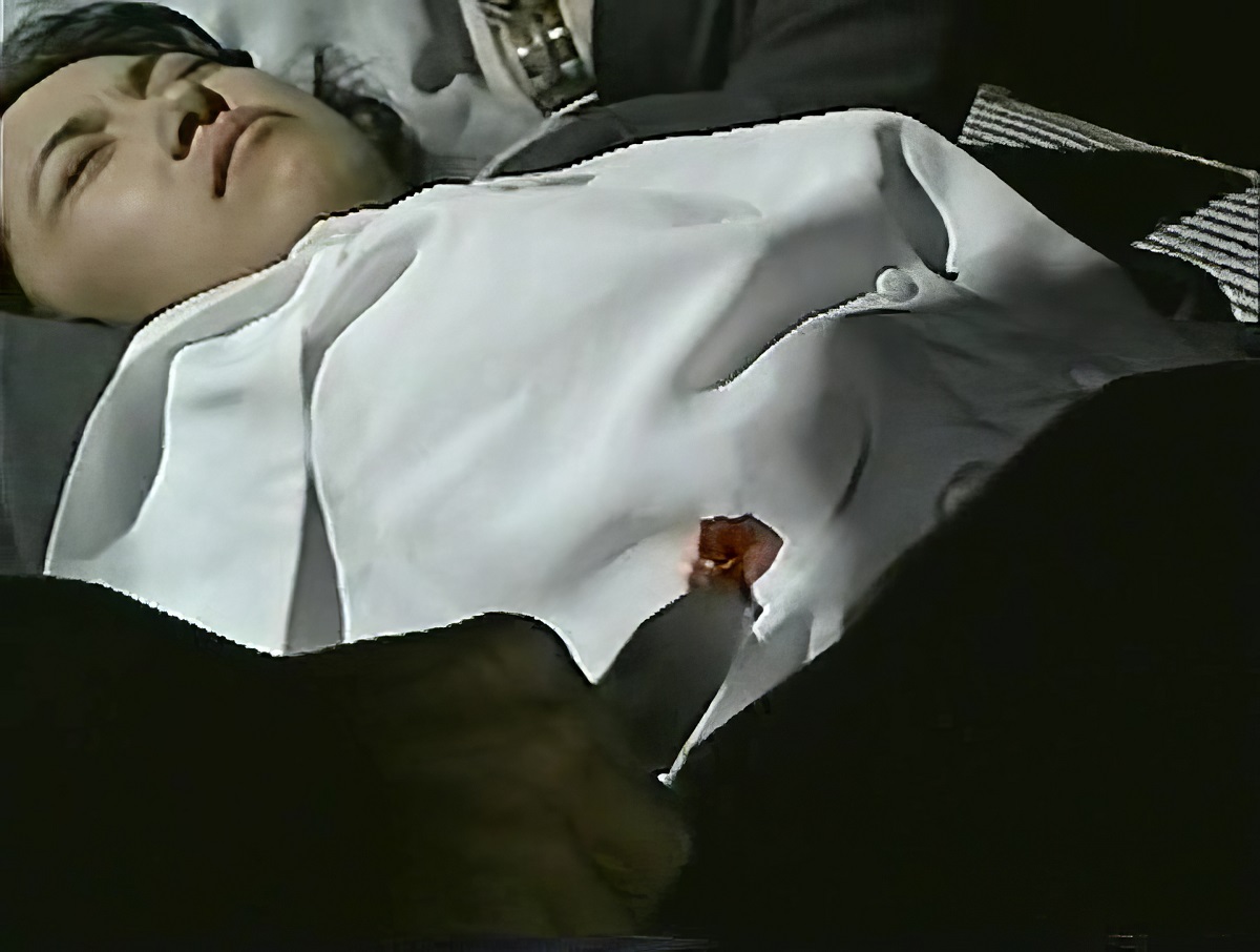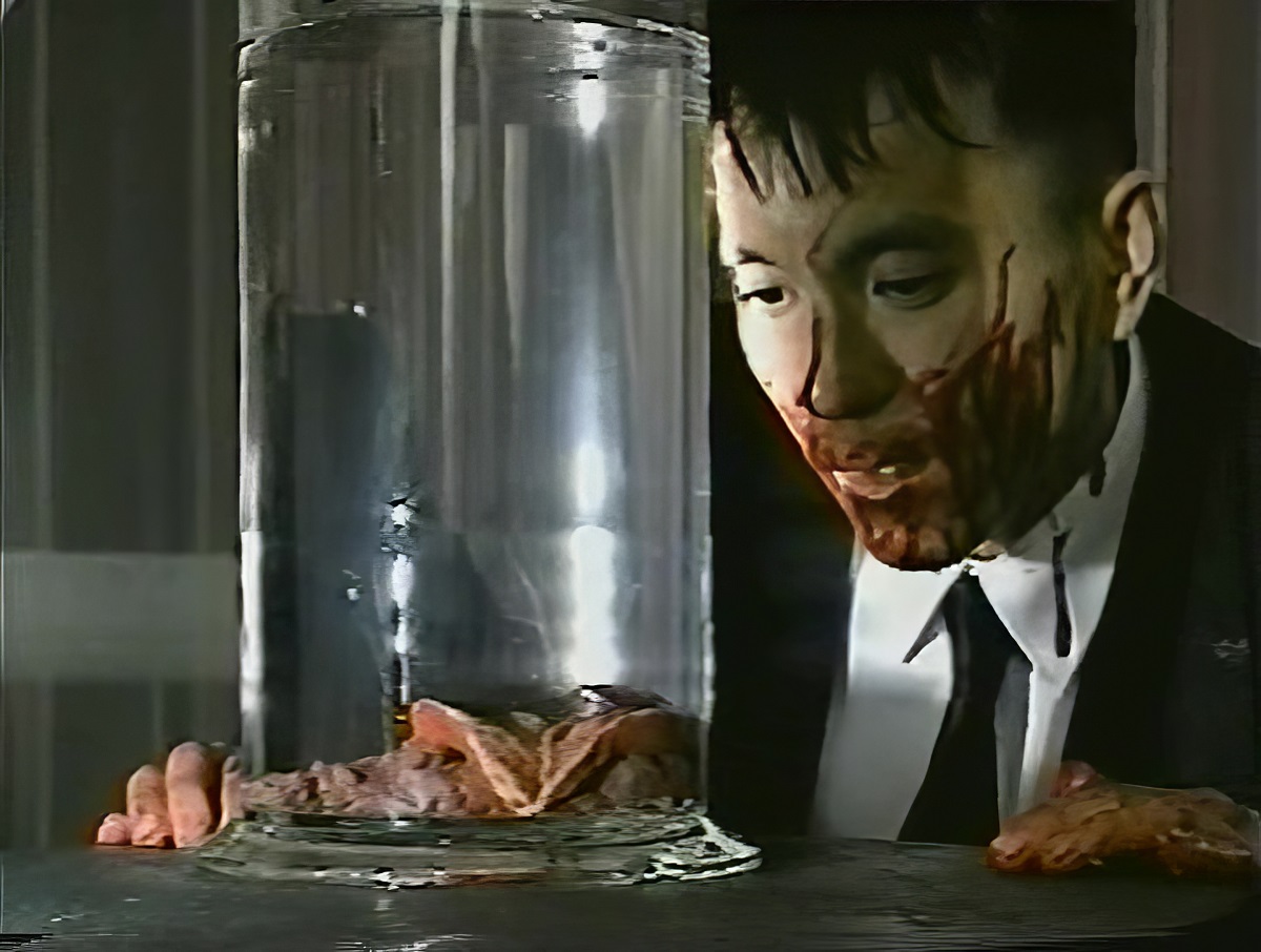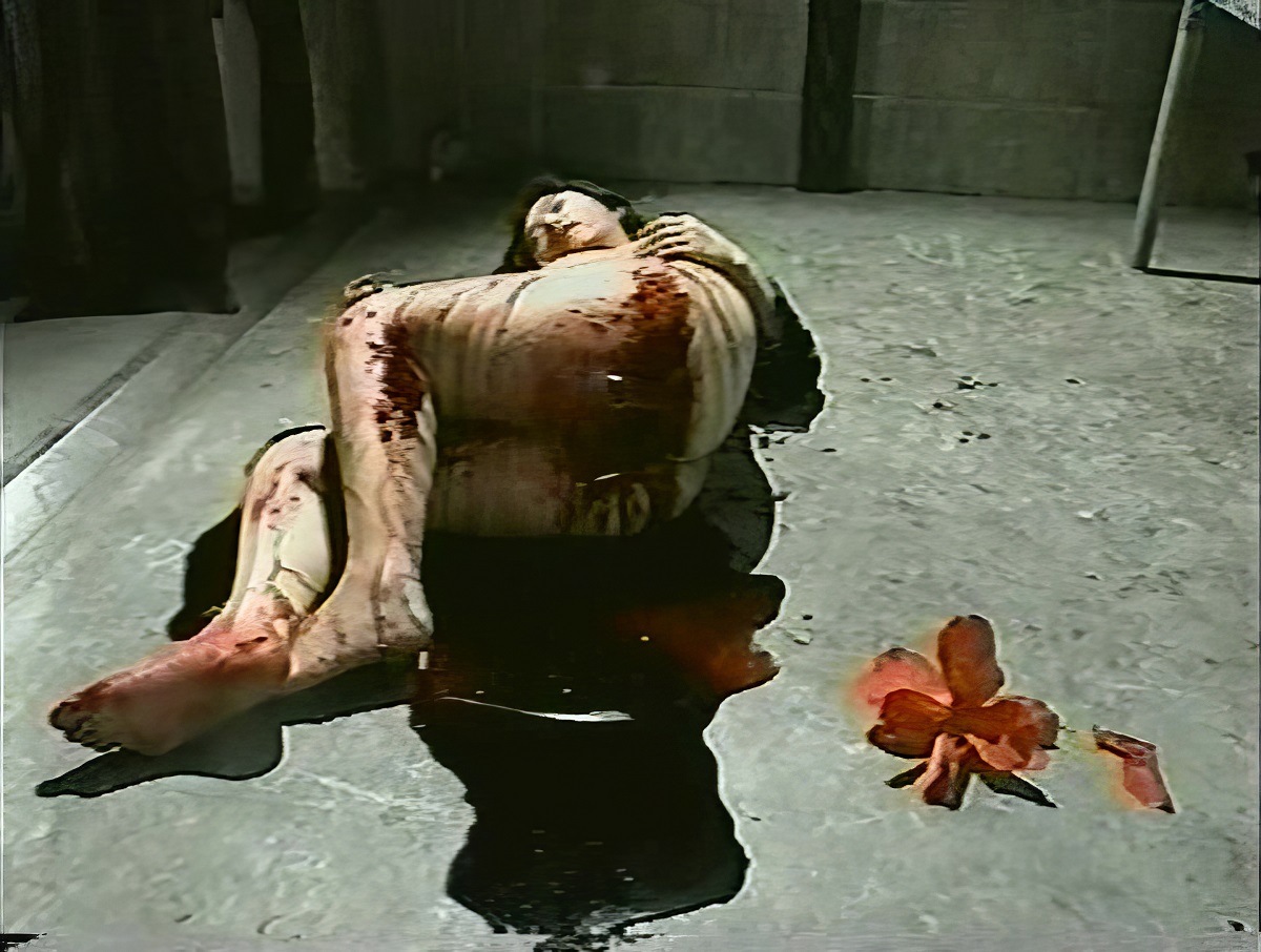 villan of the piece cuts out her vulva and places it in a jar to add to his