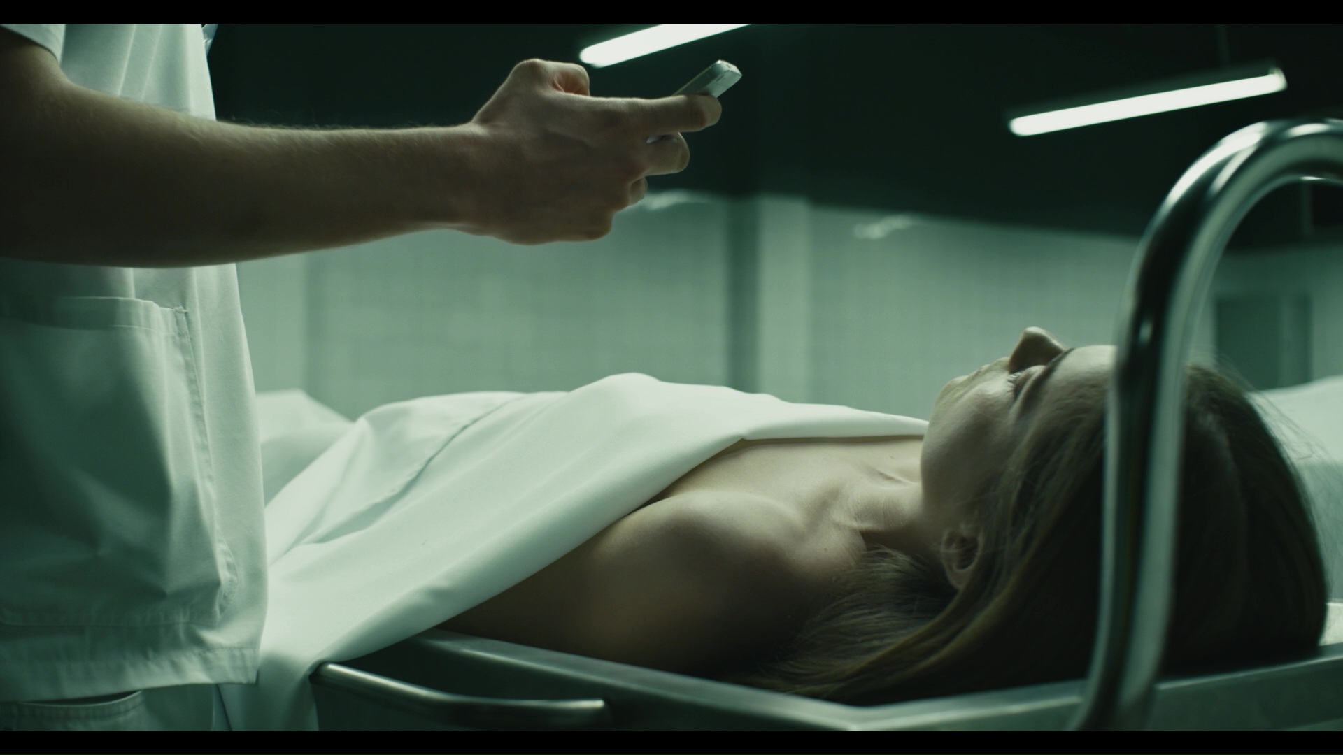 local morgue where the morgue attendant recognizes her. He takes some photos