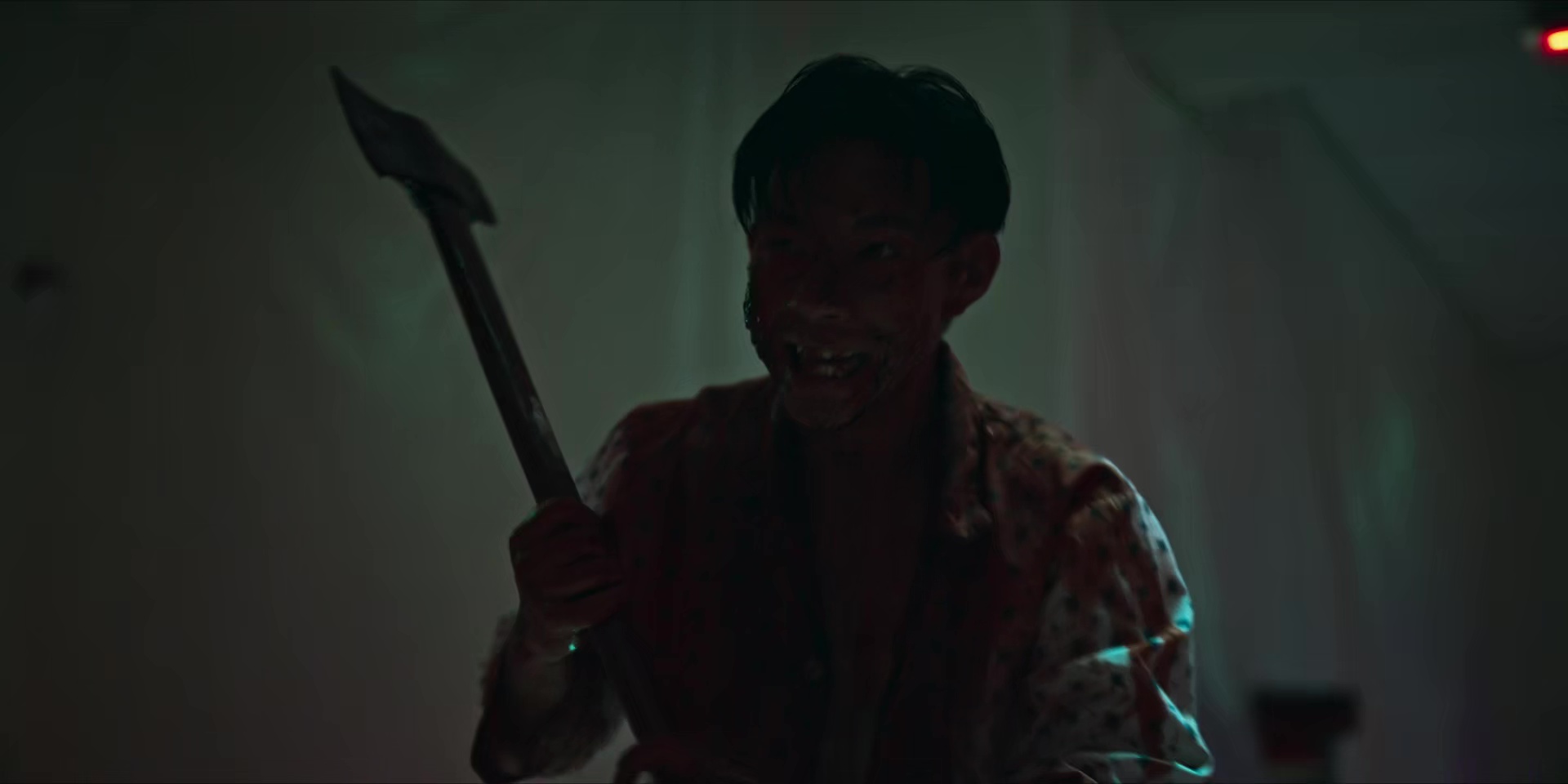 really matter though as the talking takes second place to the blood spraying