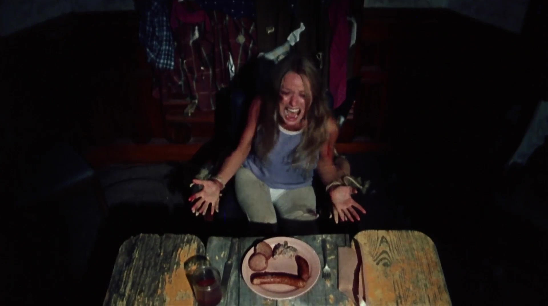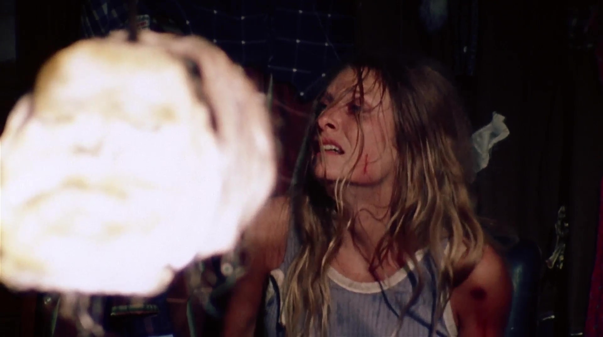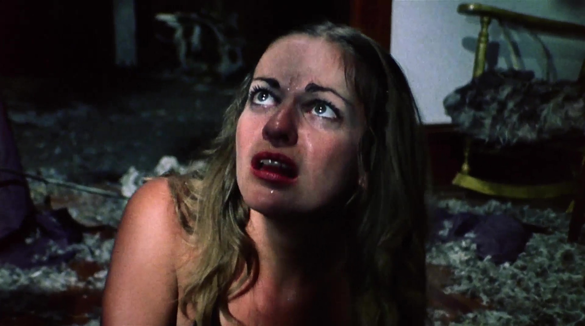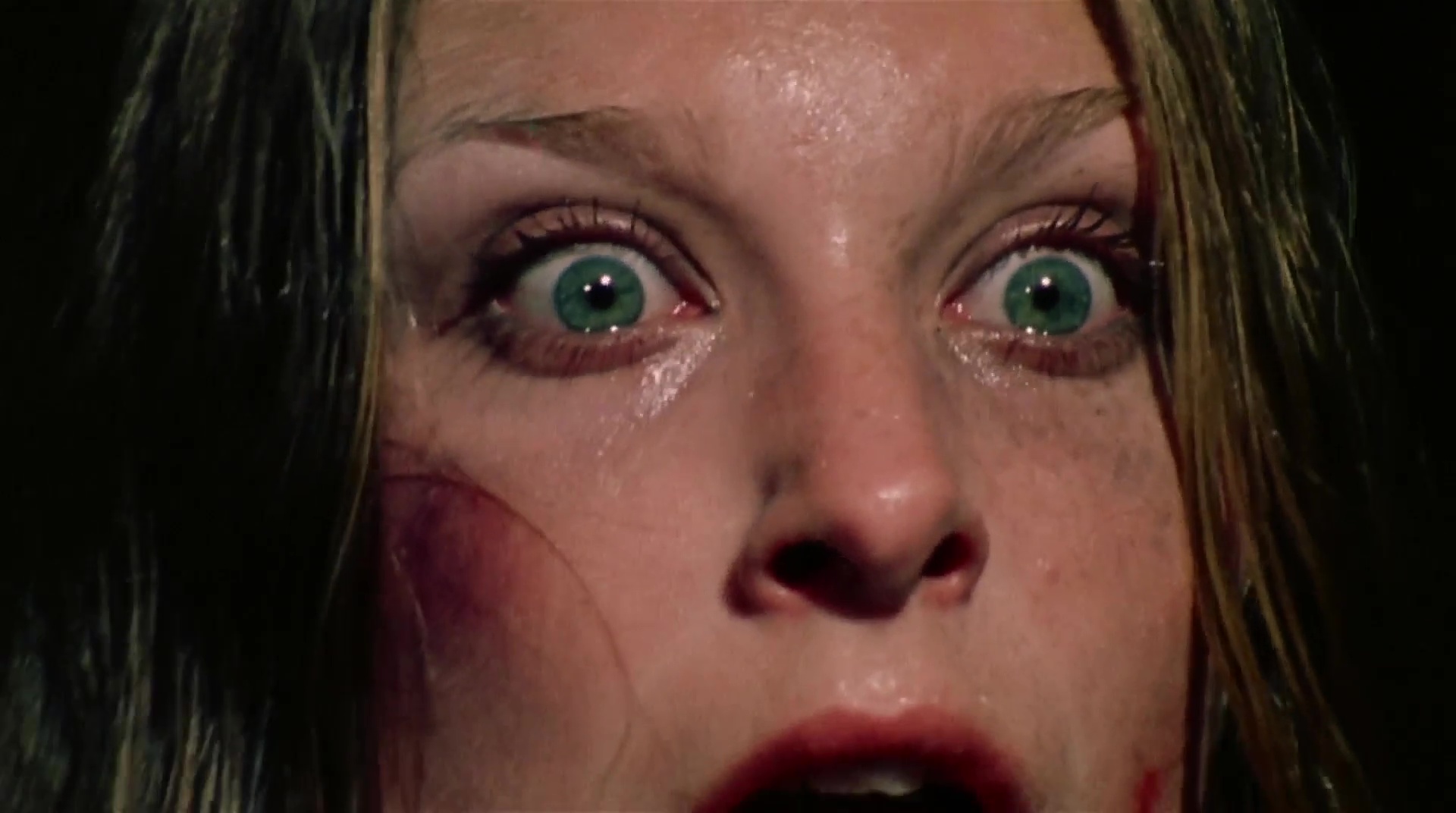 drop of blood on screen. I first saw this on VHS, in fact I brough this and