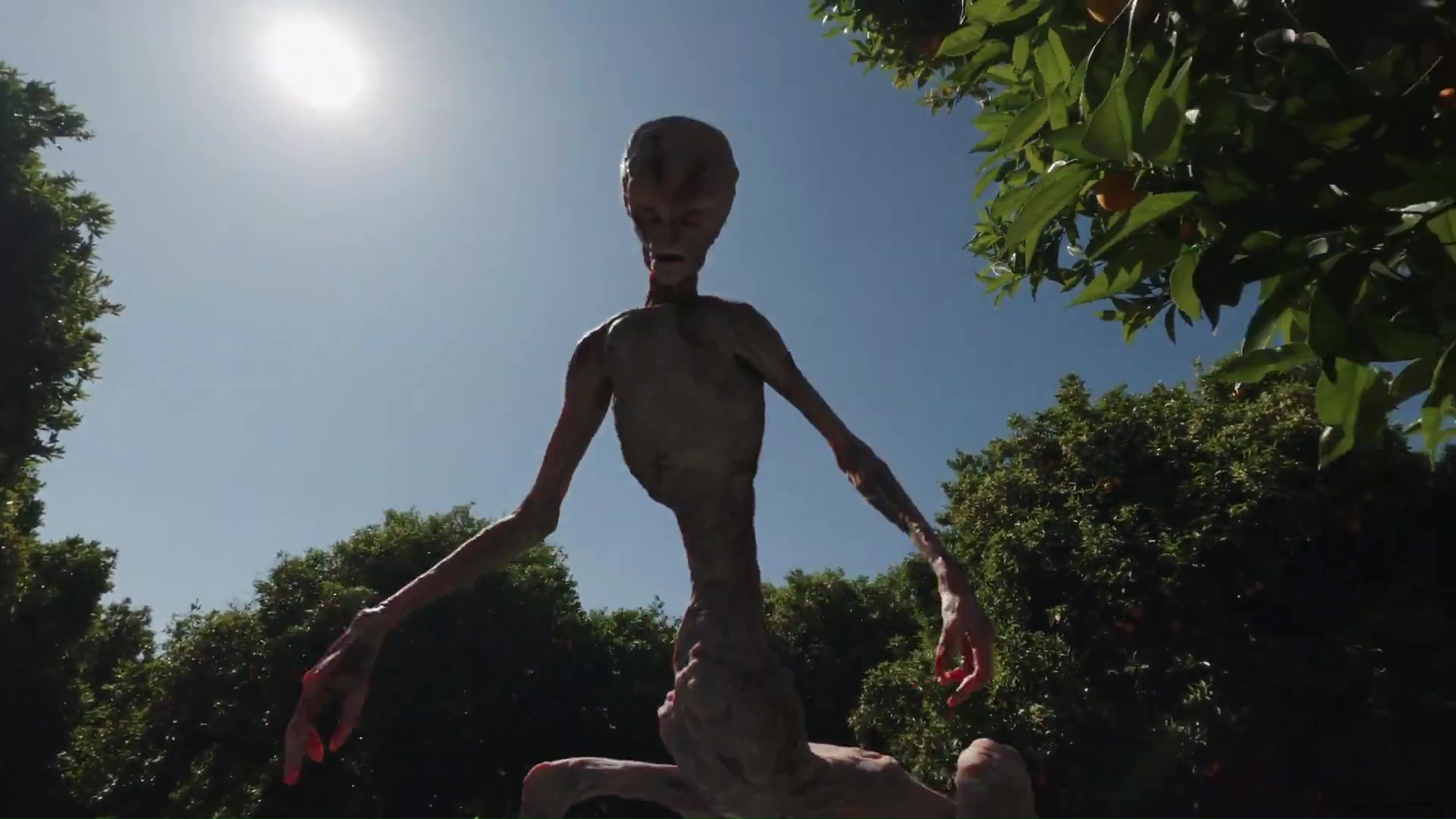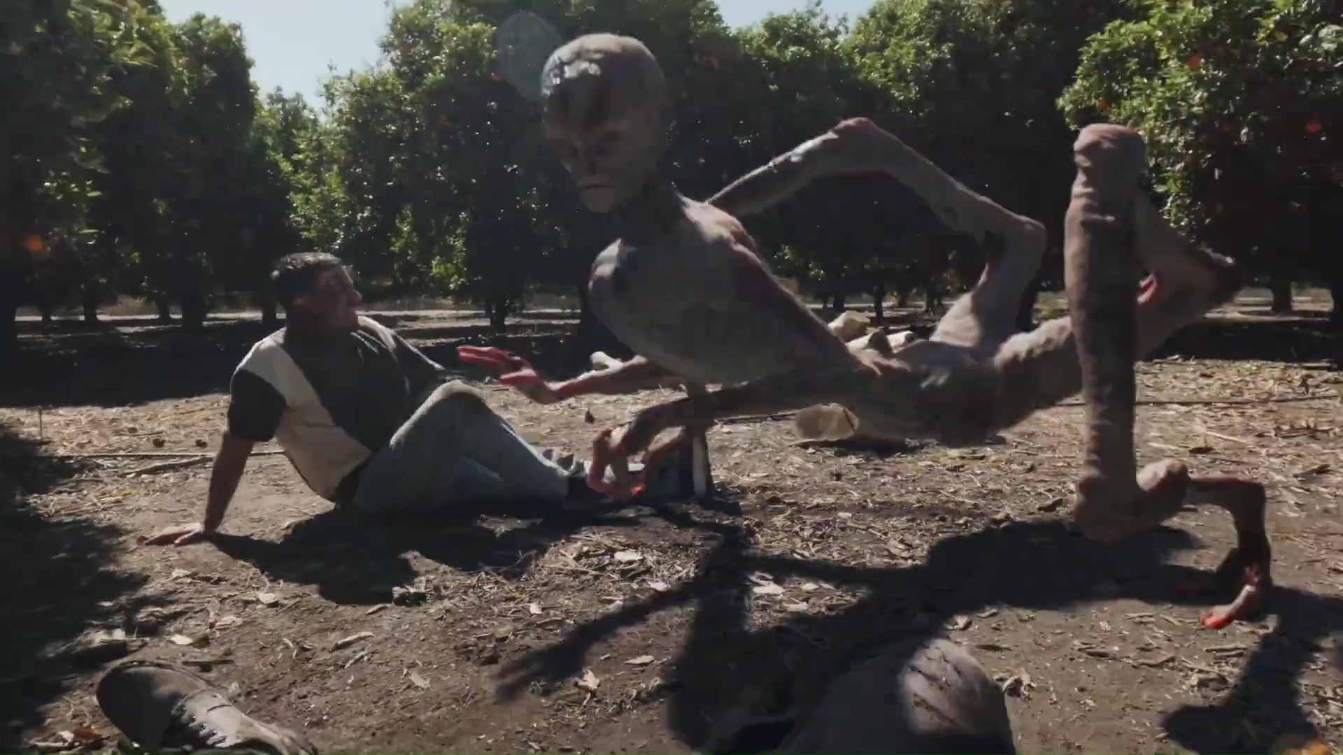 Their plane is attacked by an alien and they decide to jump out and parachute