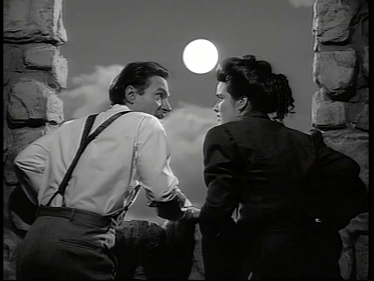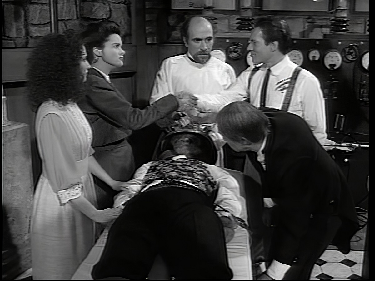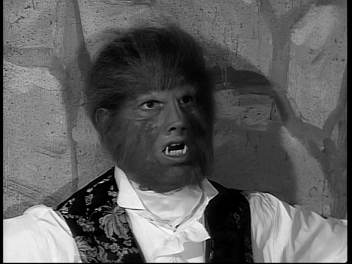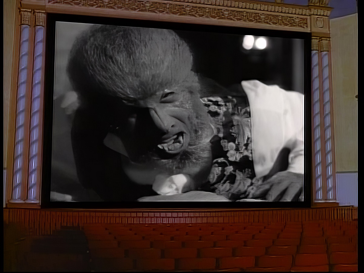 "Bride Of The Wolfman" starts to mysteriously play on the screen they find