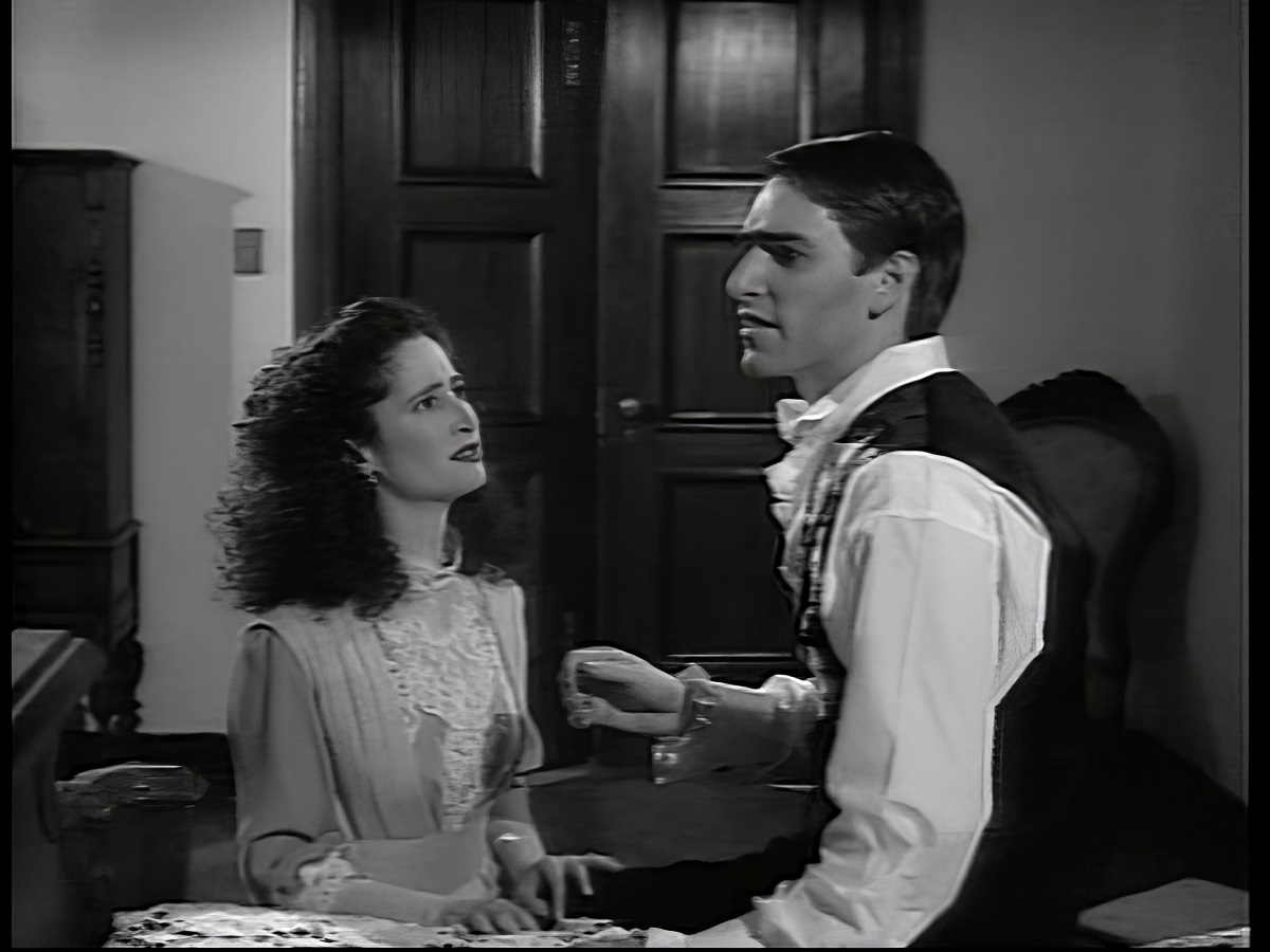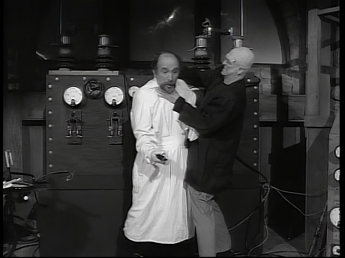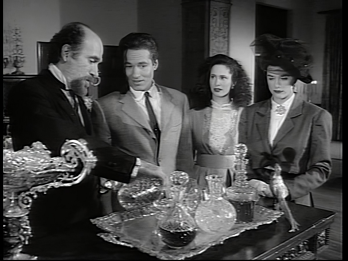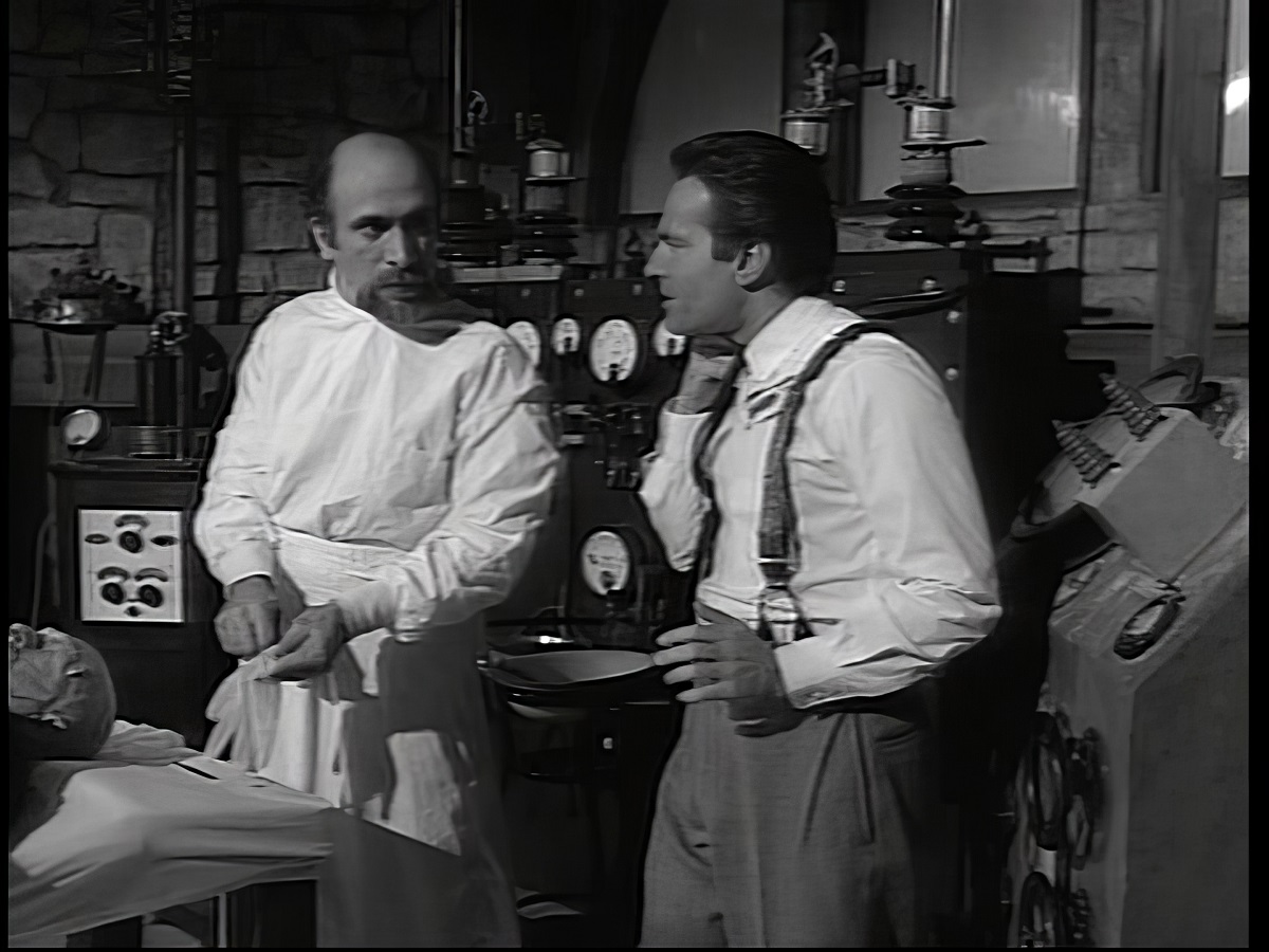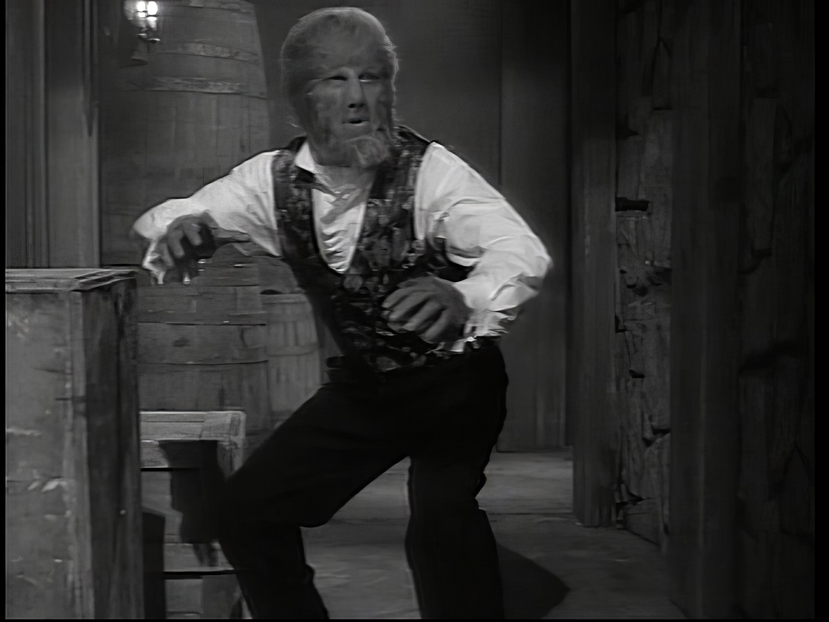 "Bride Of The Wolfman" starts to mysteriously play on the screen they find