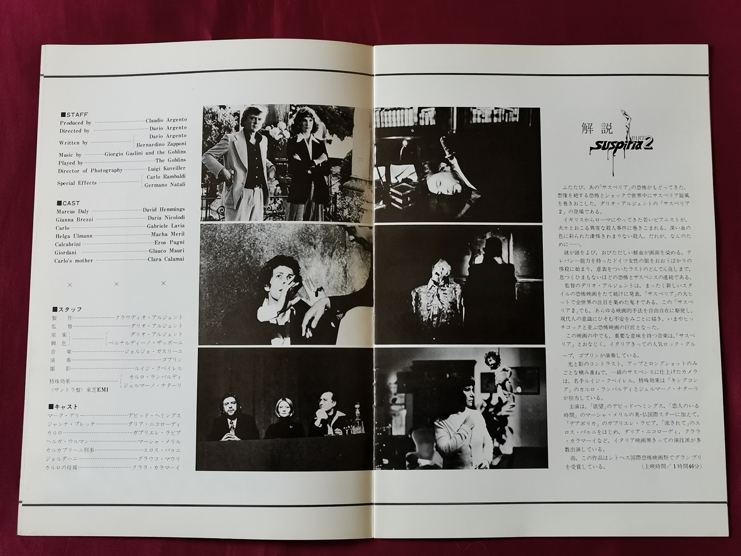Original Japanese movie programme from the cinema release of Deep Red