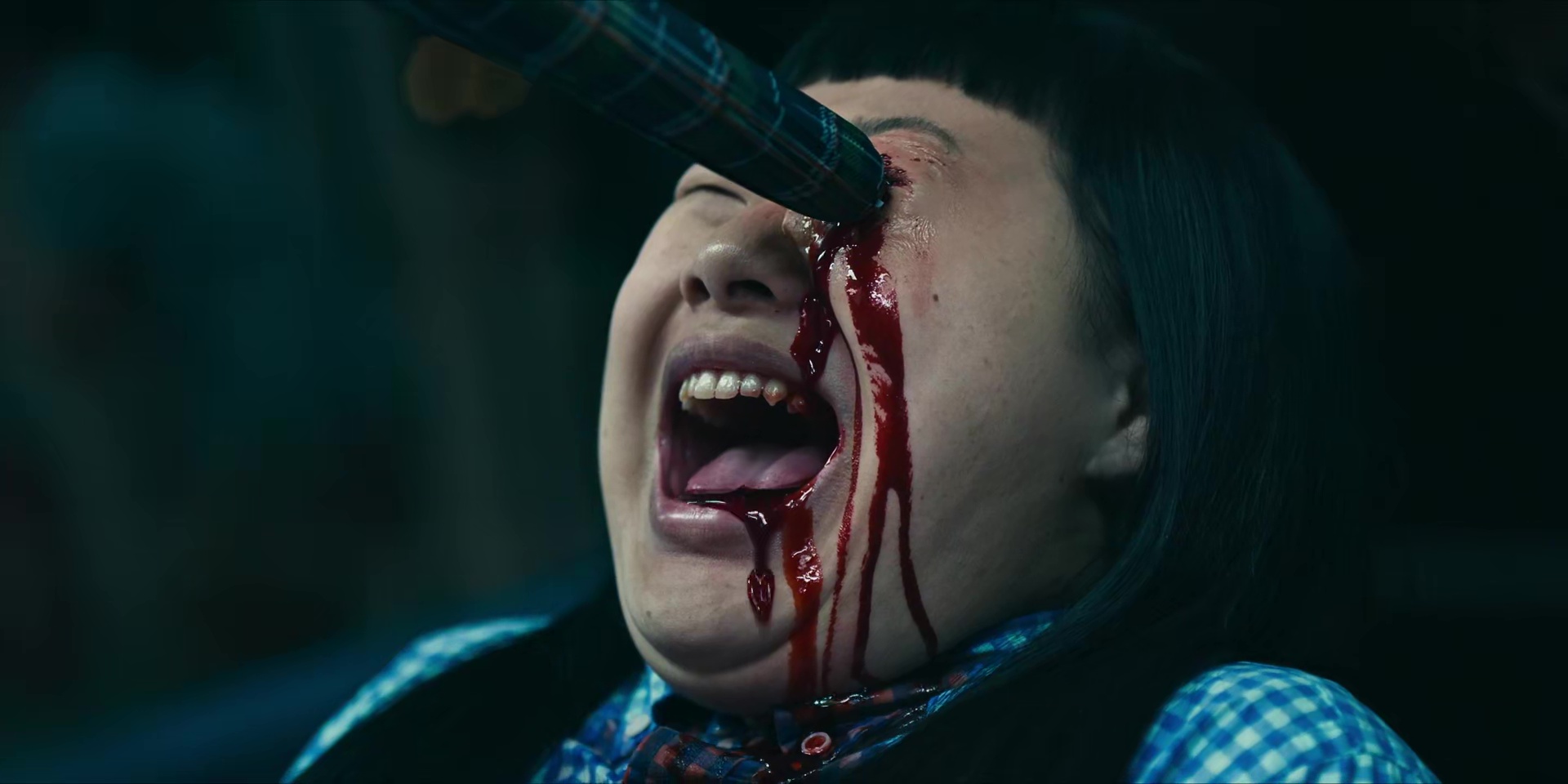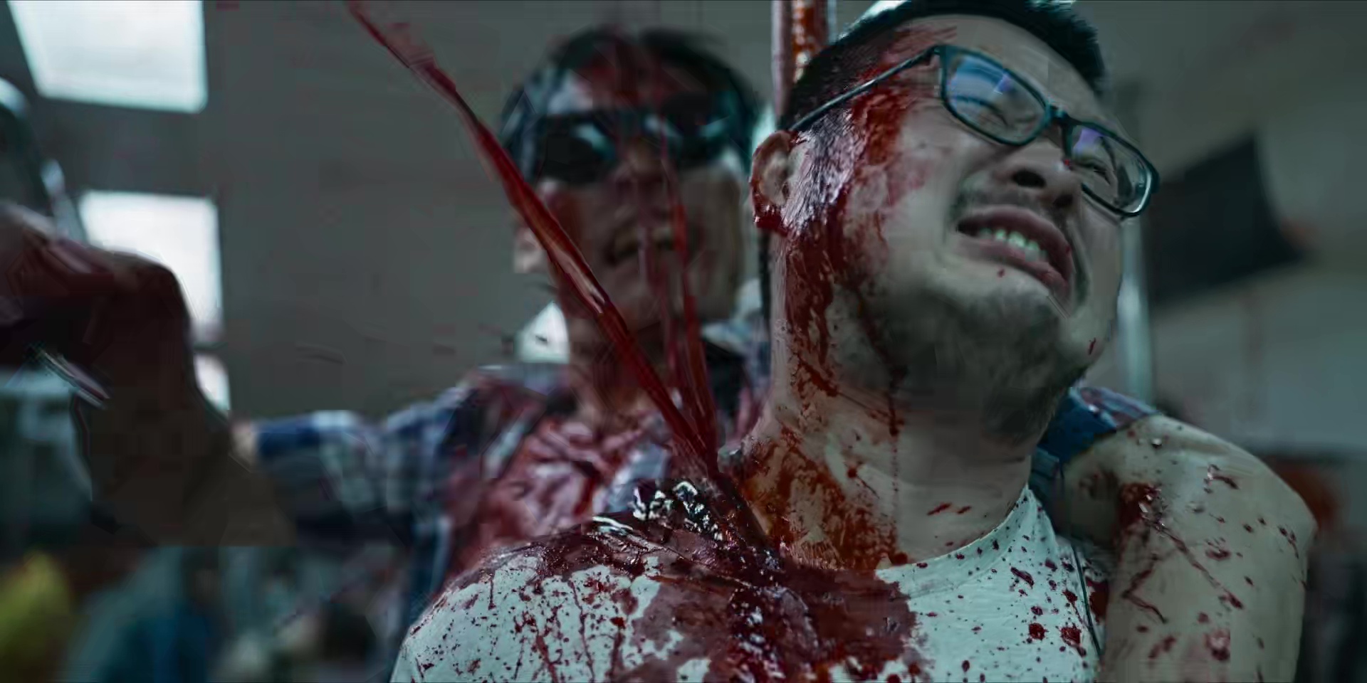 really matter though as the talking takes second place to the blood spraying
